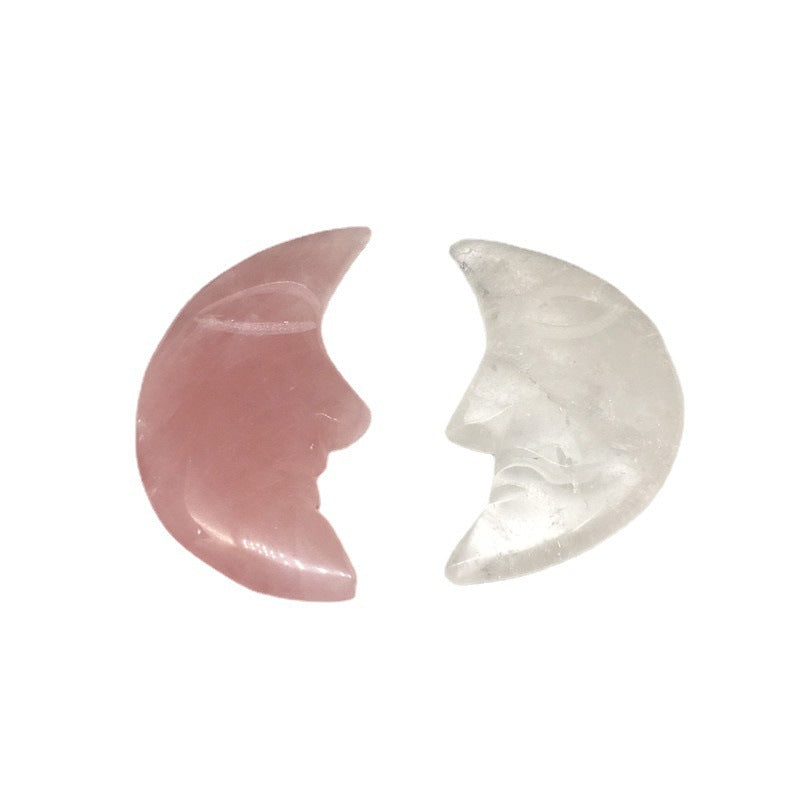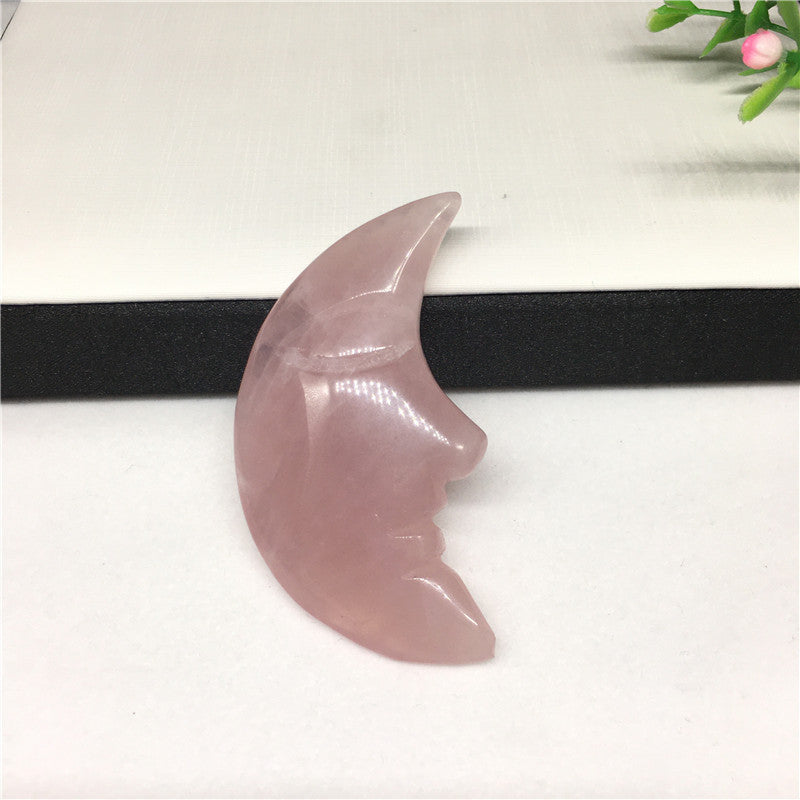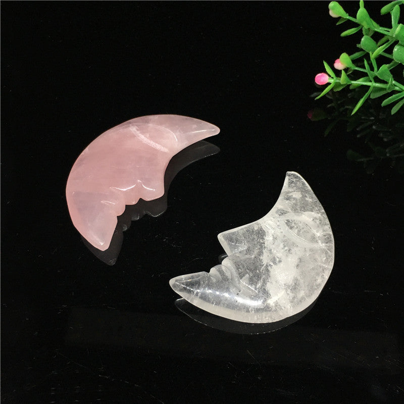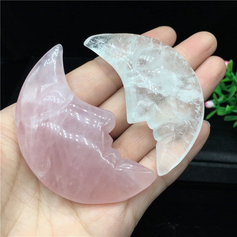 Hand Carved Quartz Moon Rose Crystal Gold Obsidian Healing Stone
